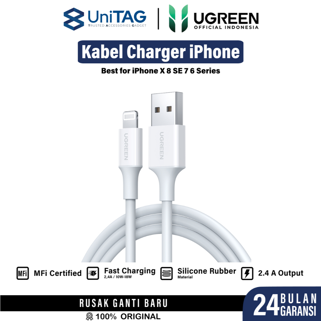 UGREEN Kabel Data Fast Charging iPhone XR XS Max X 8 SE 7 6 Plus Charger USB to Lightning Cable MFi by UniTAG