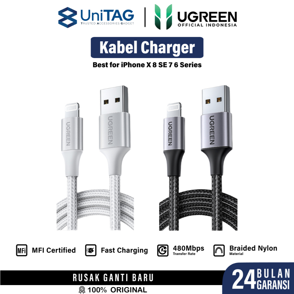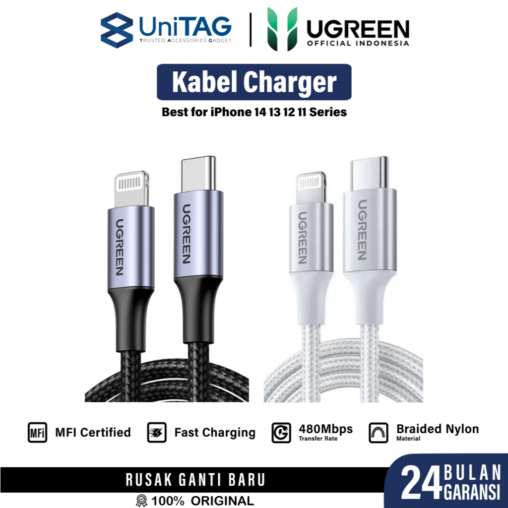 UGREEN Kabel Data Fast Charging for iPhone 16 15 14 13 12 11 Pro Max Plus Samsung iPad Macbook Laptop Charger Lightning MFi USB A Type C Micro Cable Handphone by UniTAG
