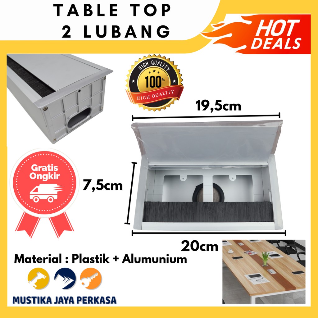 Cable Organizer Tempat Kabel Meja Plastik Table Top 2 Lubang Slot Colokan Listrik Meja