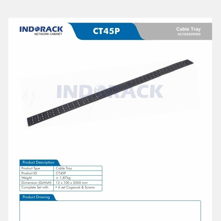 Cable Tray INDORACK 45U Management Cable Vertical - CT45U 100mm