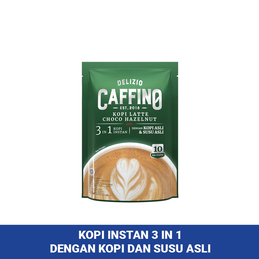 Caffino Kopi Latte Choco Hazelnut Pouch [20 gr x 10 Sachets]