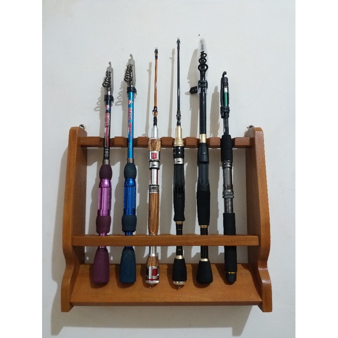 Cagak joran pancing ROD RACK / RAK JORAN Tinggi 40cm lebar 38cm kayu Jati Belanda BISA Di Bongkar pasang (knocdown)