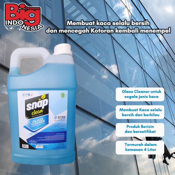 Pembersih Kaca Cairan Glass Cleaner Snap Clean 4 Liter