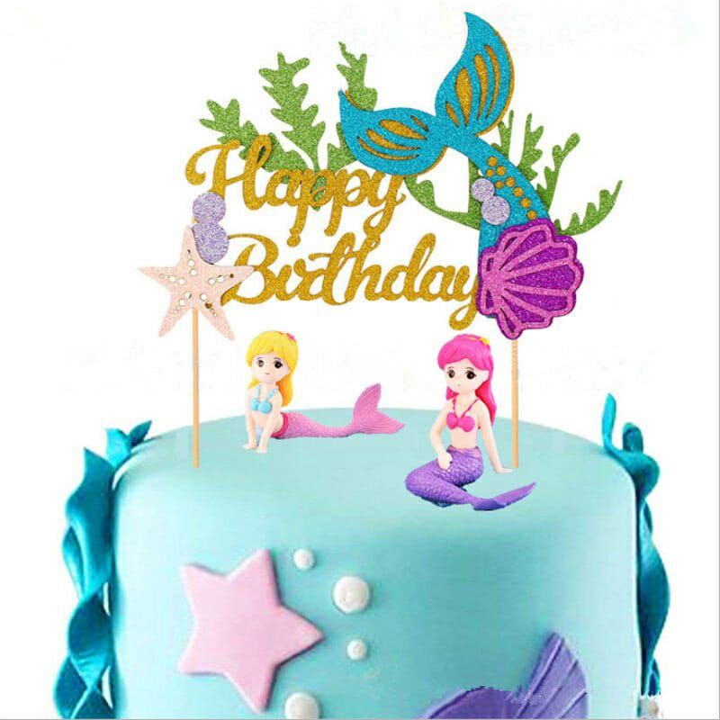 Cake Topper MERMAID HBD Gold Glitter hiasan kue Happy Birthday dekorasi kue cake Topper kue ulang tahun MERMAID birthday cake topper mermaid