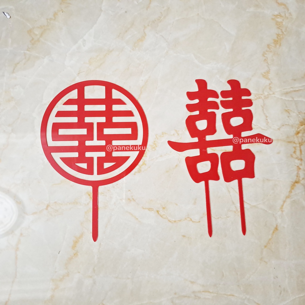 Cake Topper SHUANG XI/ DOUBLE HAPPINESS/ xuang xi/ tunangan/ tingjing/ sangjit/ wedding/ chinese/ topper akrilik/ acrylic emas gold