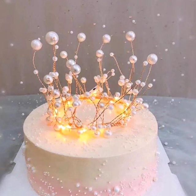 Cake Topper mahkota mutiara/ toper kue pearl crown gold/ Hiasan kue ulang tahun/ Dekorasi kue tart