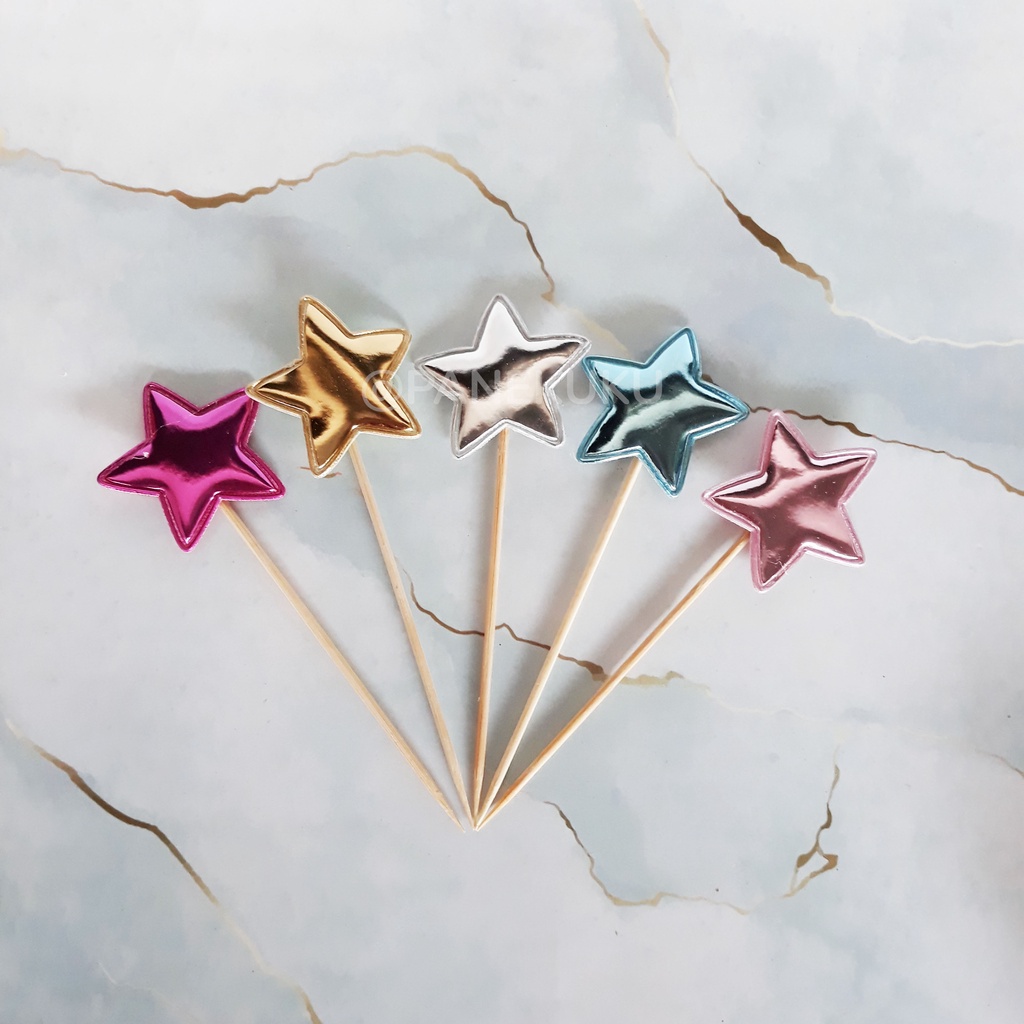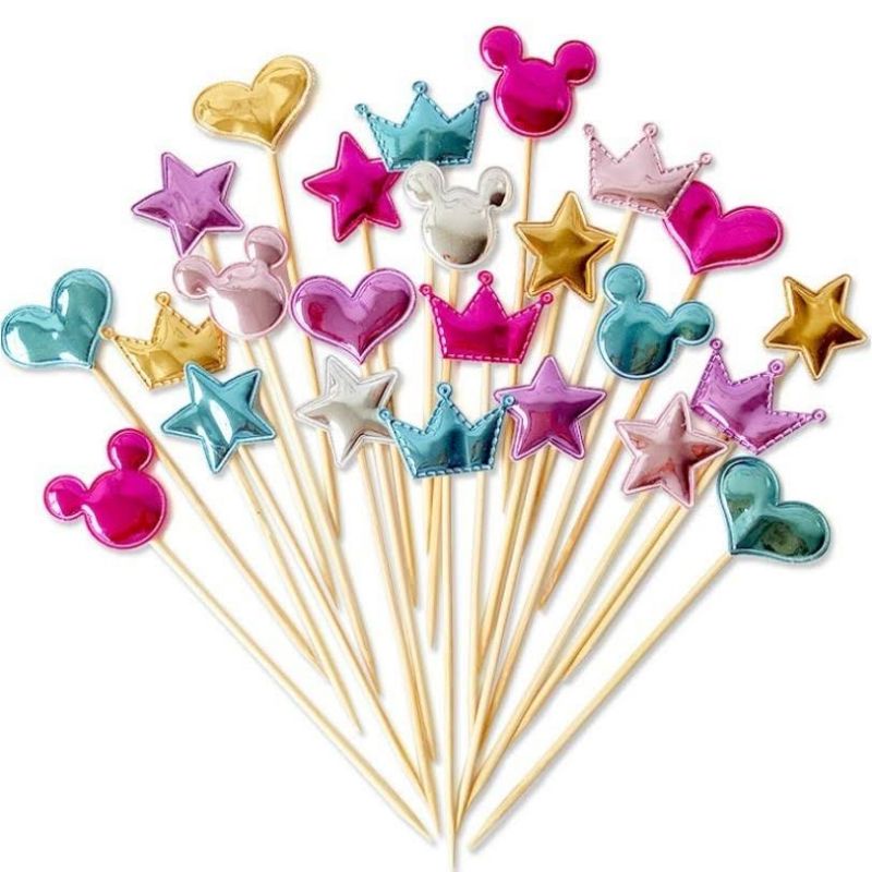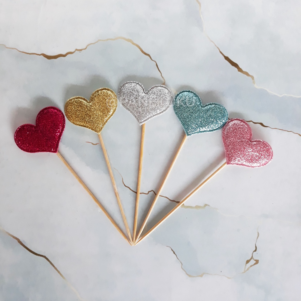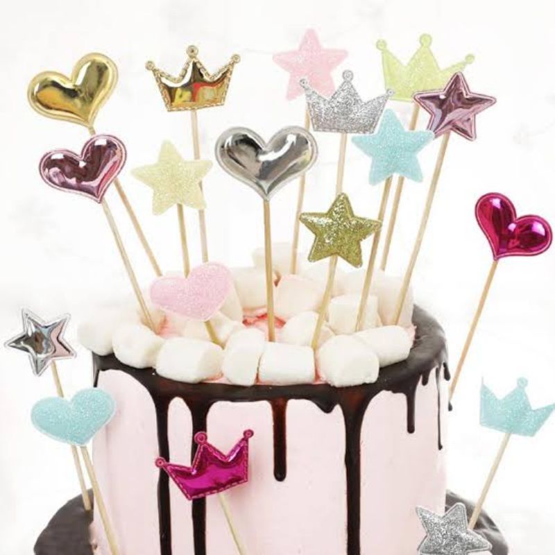 Cake Topper star bintang/ Topper mahkota/ Topper love hati glitter dan glossy (5 PCS)/ Hiasan dekorasi kue tart