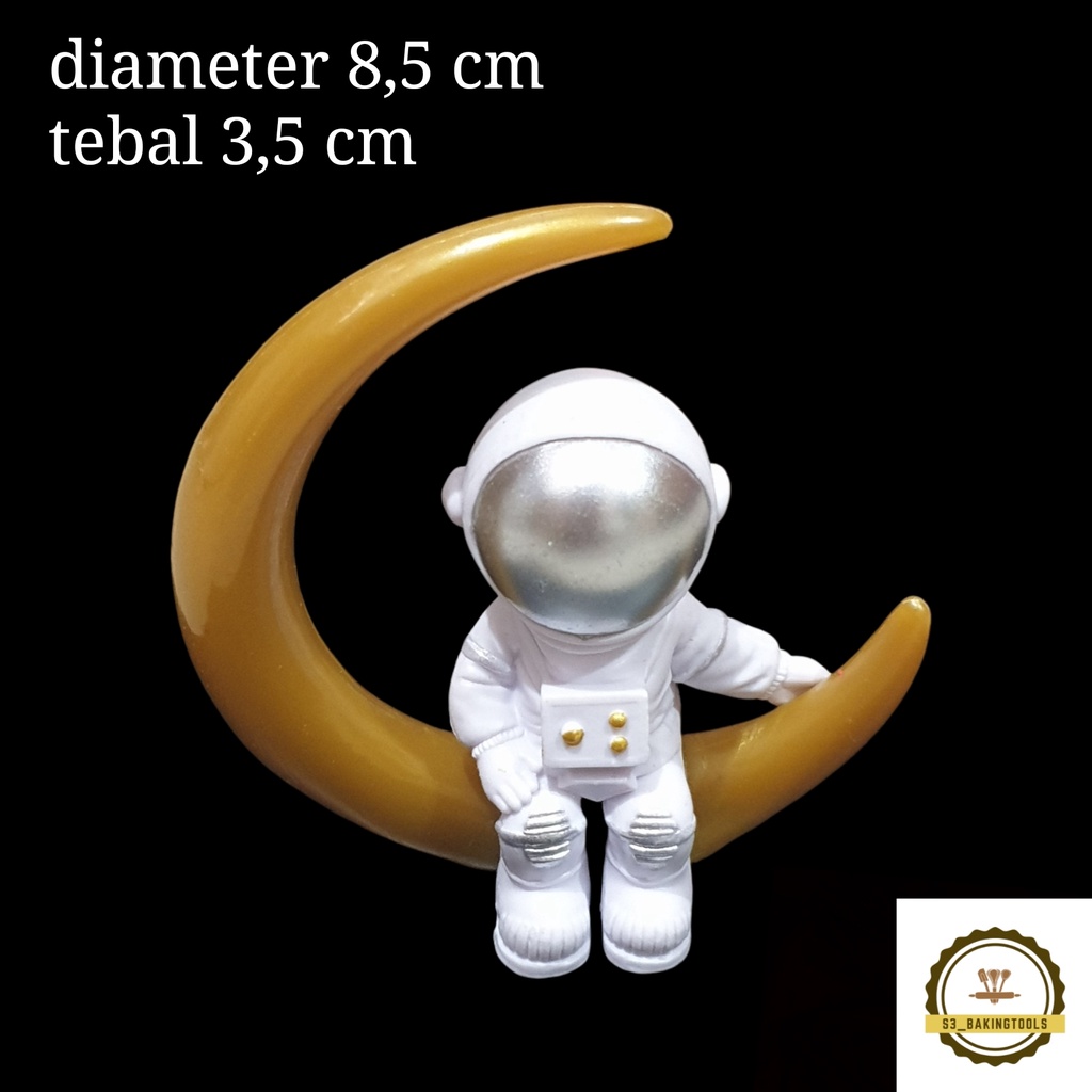 Cake topper figure astronot and moon bahan pvc