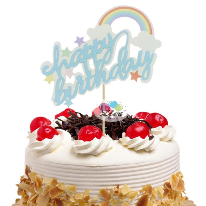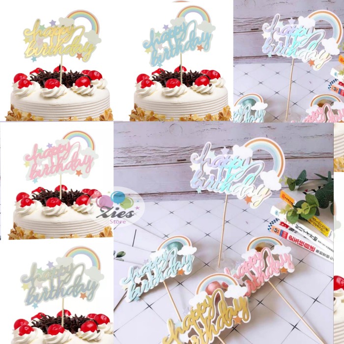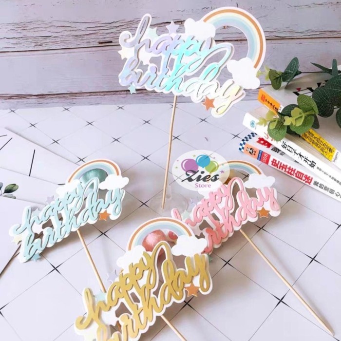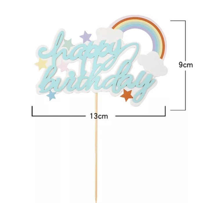 Cake topper happy birthday awan pelangi tulisan sambung / tusukan kue