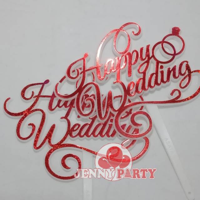 Cake topper happy wedding warna merah