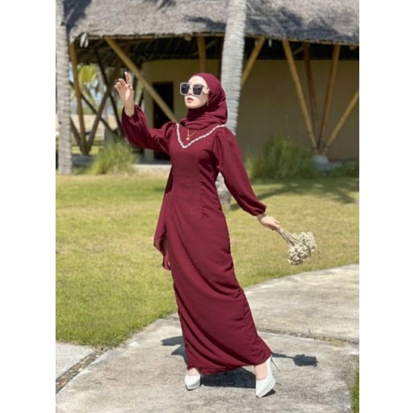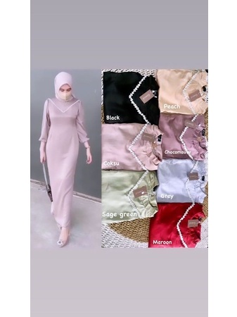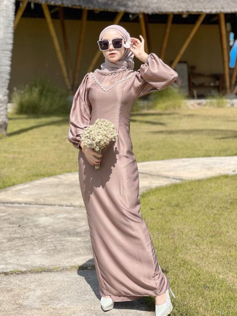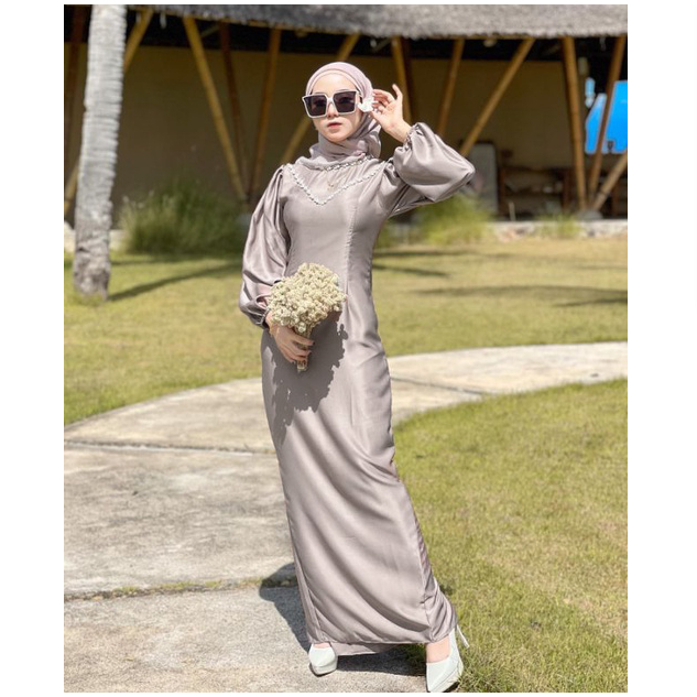 Calendula Dress Satin Silk Premium Maxi Dress Satin Polos Kombinasi Payet Mutiara