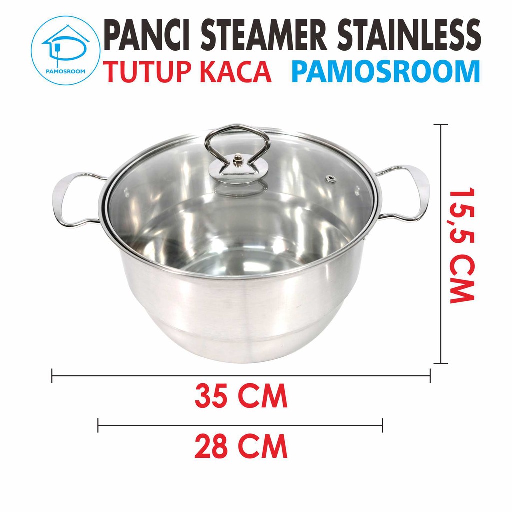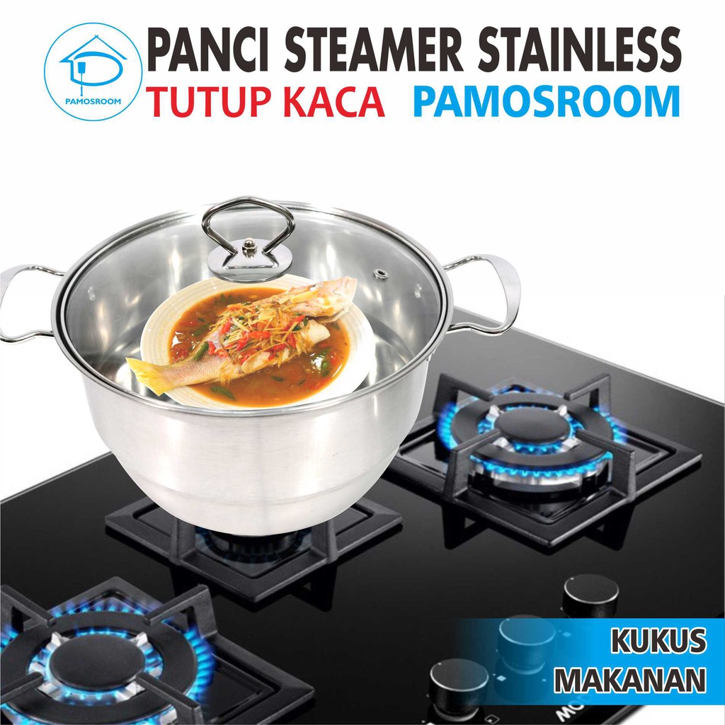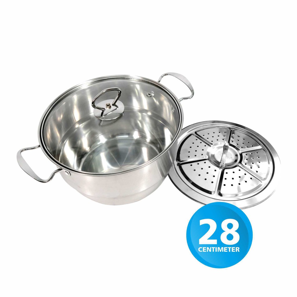 Calypso Panci Steamer Stainless 28cm + Tutup Kaca 28 Cm Free Kukusan