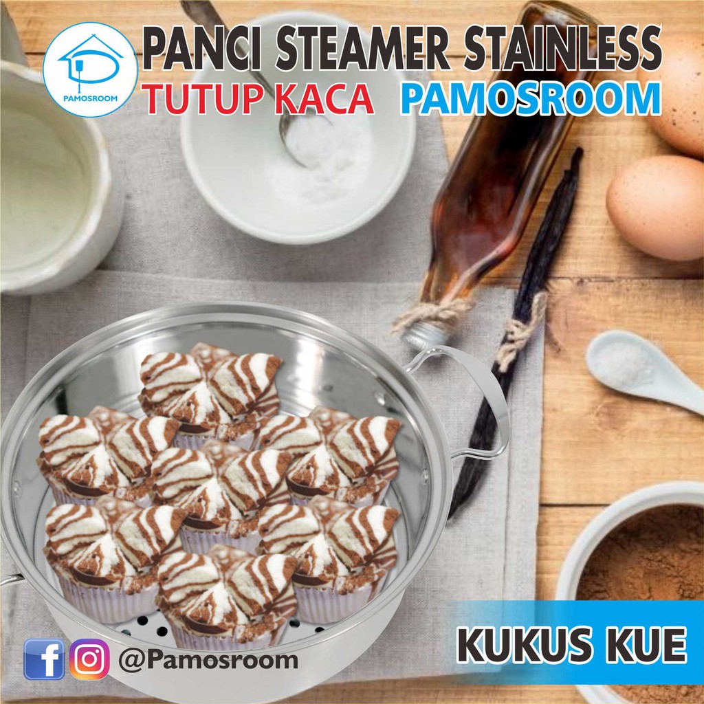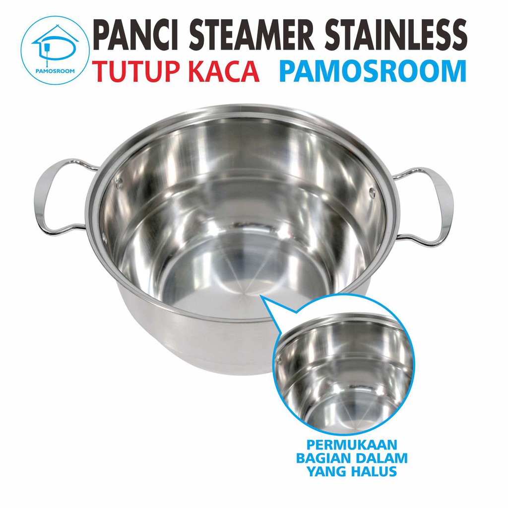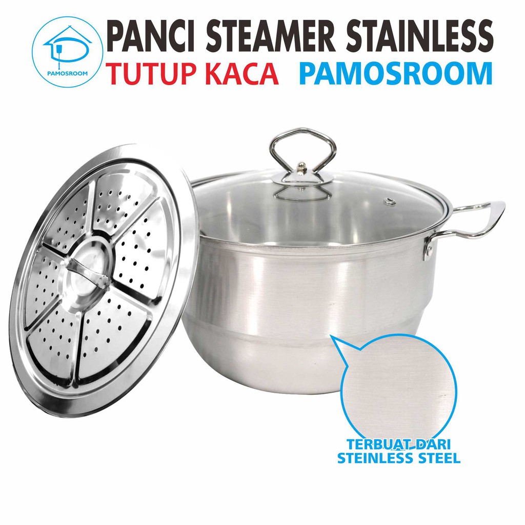 Calypso Panci Steamer Stainless 28cm + Tutup Kaca 28 Cm Free Kukusan