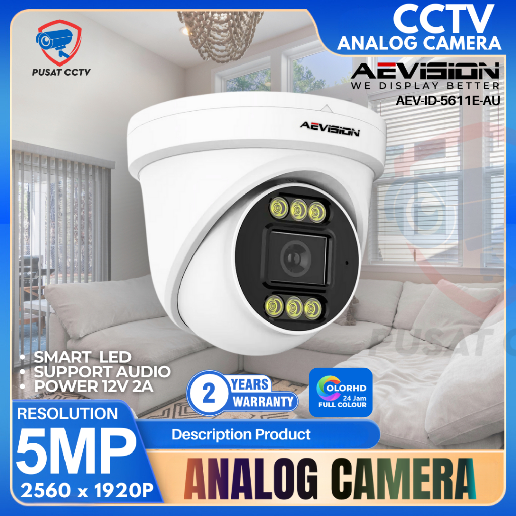 Camera CCTV Analog Indoor 5MP Colorvu Aevision BERWARNA II GARANSI FREE BNC 2560 x 1920 p
