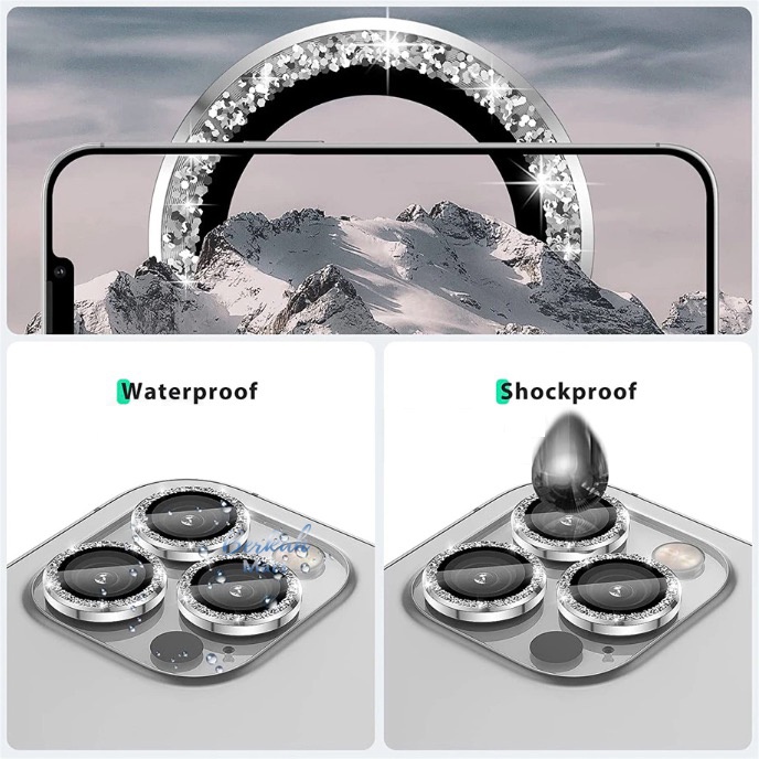 Camera Lens Protector Diamond Glitter Bling For iPhone 11 12 13 Pro 11 12 13 Pro Max 12 13 Mini Metal Ring Aluminium Alloy Anti Strach Full CoverageTempered Glass Film Camera Premium Kamera Belakang