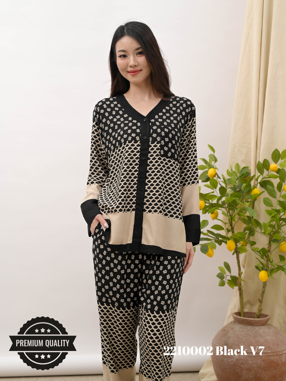 [2210002] Cammomile AF piyama list hitam