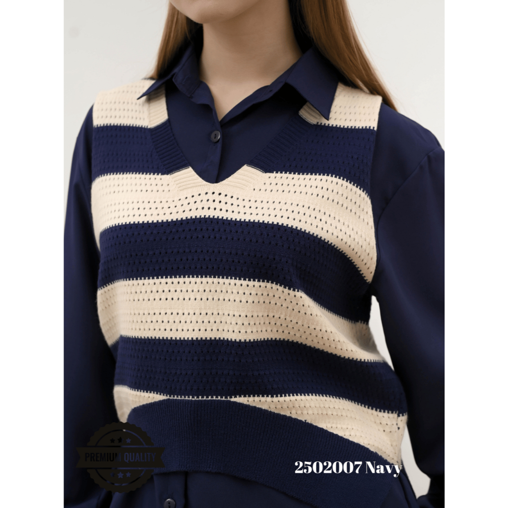 Cammomile 2502007 AF V25 2pcs Kemeja lengan panjang rompi rajut bolong