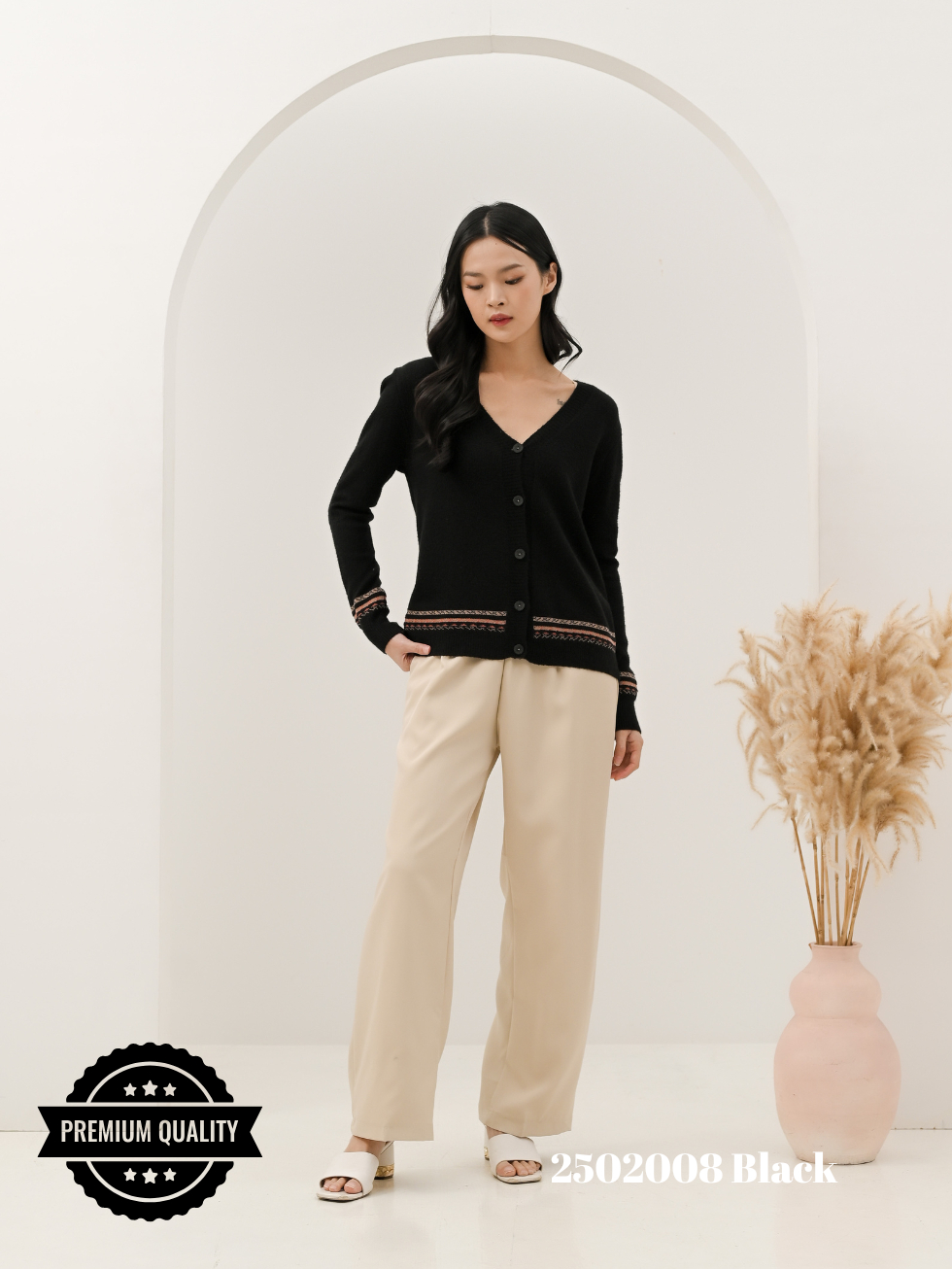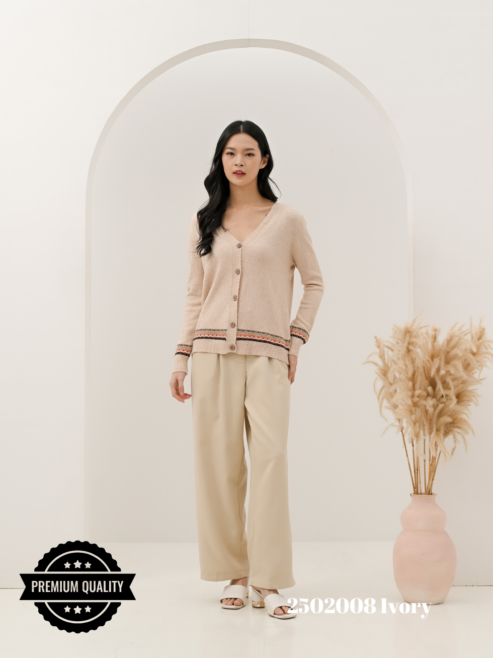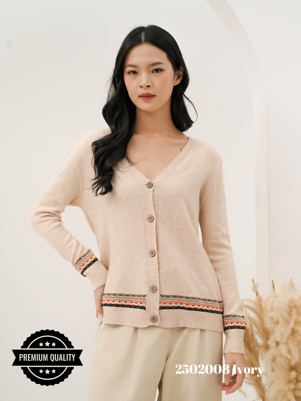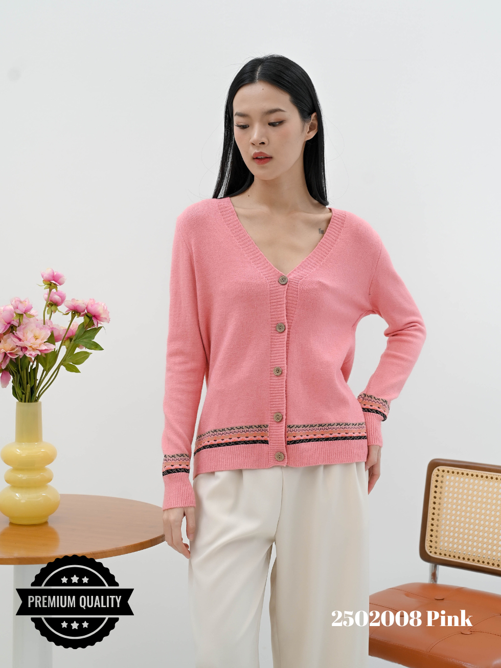 CAMMOMILE 2502008 AF Cardigan rajut V26 006221MC lis etnik