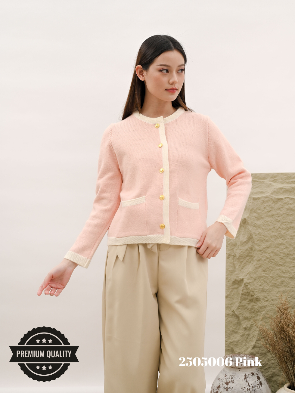 [2505006] Cammomile V28 Cardigan rajut tebal kancing gold Christmas Natal