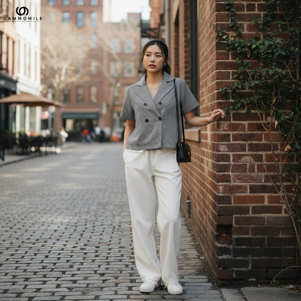Cammomile SIA Blazer kotak catur lengan pendek 2307063