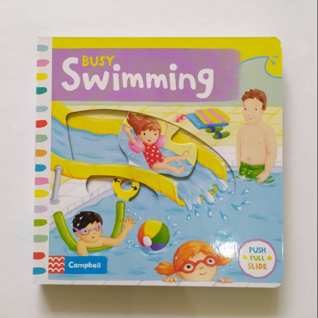 Campbell Busy Swimming (Push Pull Slide Novelty Board Book) (minor) Alfabetbooks