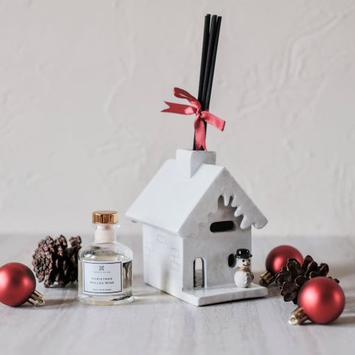 Candle Bliss Handmade Ceramic Snowman Reed Diffuser House with Terrace x Bagel Studio