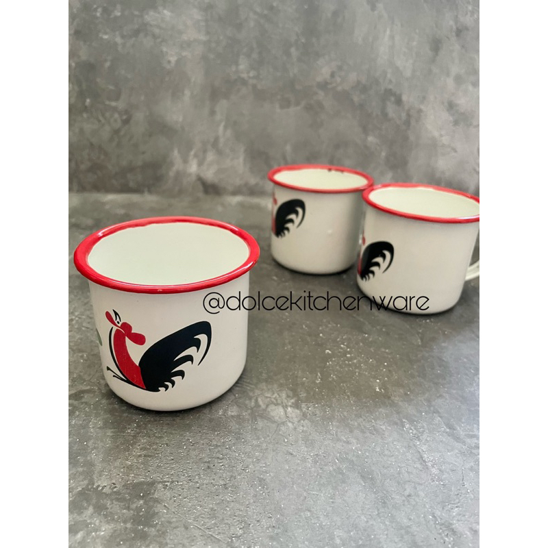 Cangkir Enamel Seng Jadul Kaleng Ayam 7 cm Lis Merah