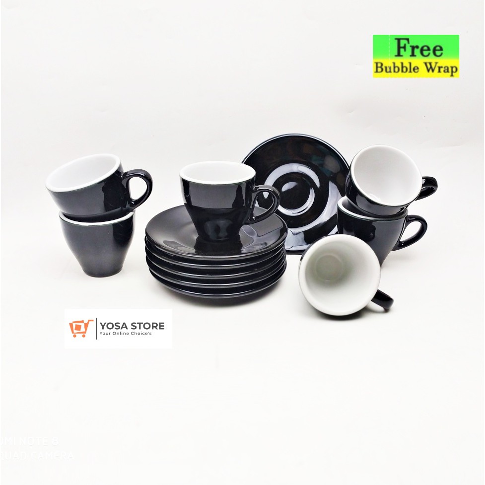 Cangkir Espresso Keramik Tipe Farve Hitam Polos 12 Pcs