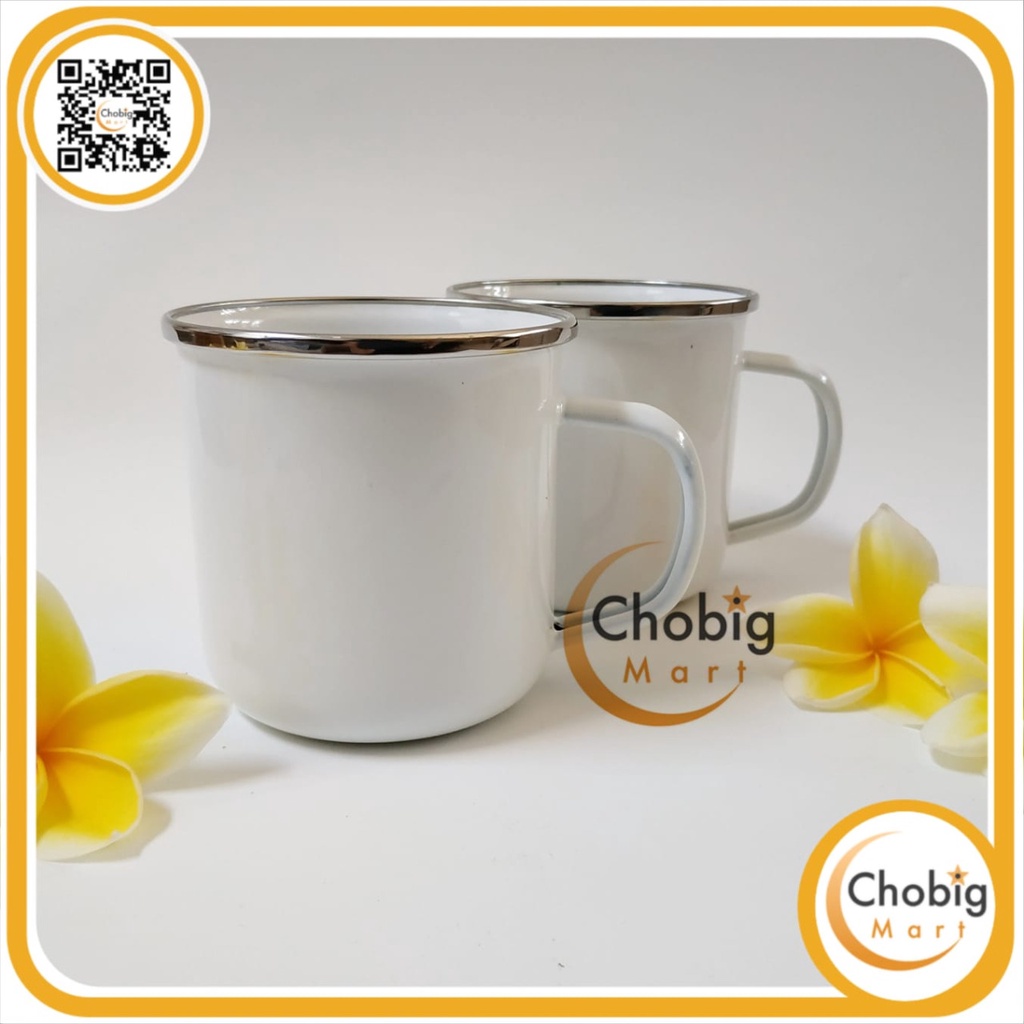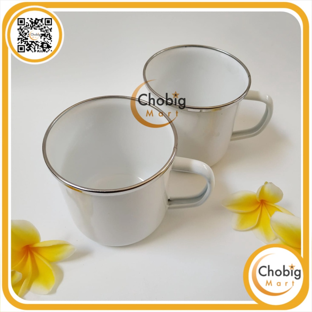 Cangkir Gelas Enamel 9cm 400ml Mug PUTIH Estetik Polos Cafe Kopi Teh / WHITE Glass