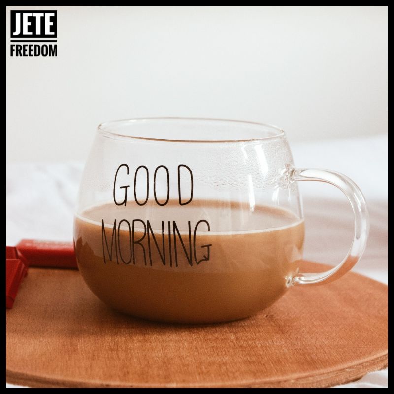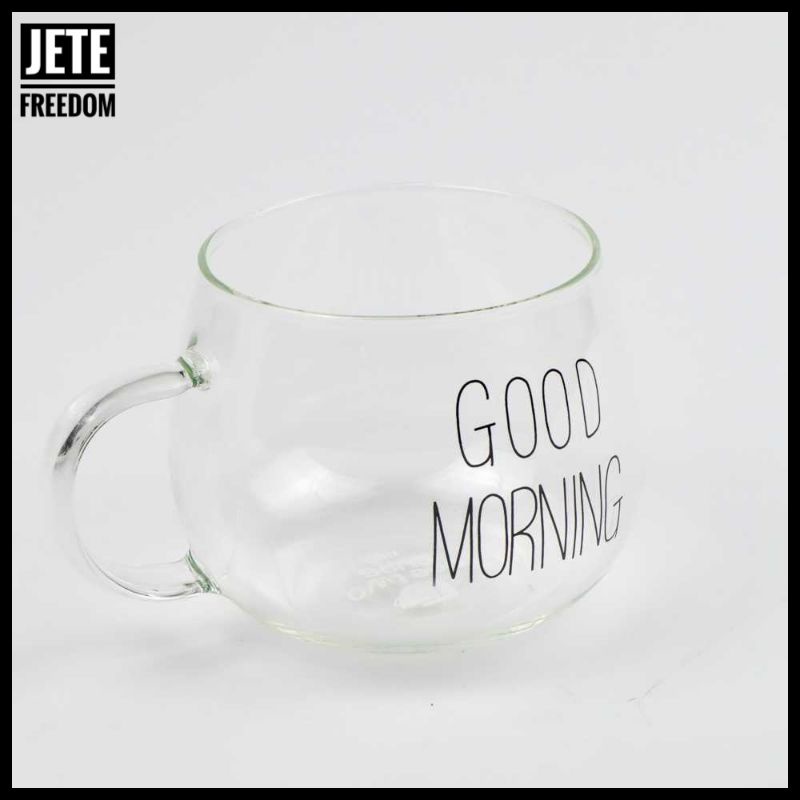 Cangkir Kopi Aesthetic Kaca Unik 350ml Bening Good Morning Dengan Gagang Gelas Minum Estetik Korean Kopi Teh Panas Dingin 350 ml 9.5 x 9.5 x 7.3 cm Borosilikat Transparan