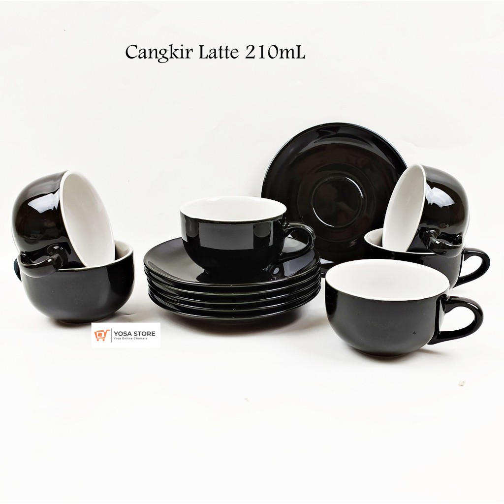 Cangkir Keramik Kopi Latte Motif KPC Cafe Hitam 12 Pcs