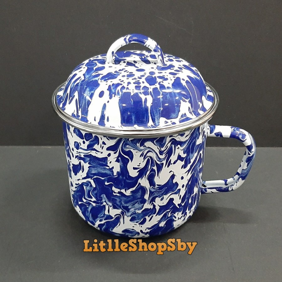 Cangkir Mug Gelas Enamel 12cm Biru Blirik Loreng