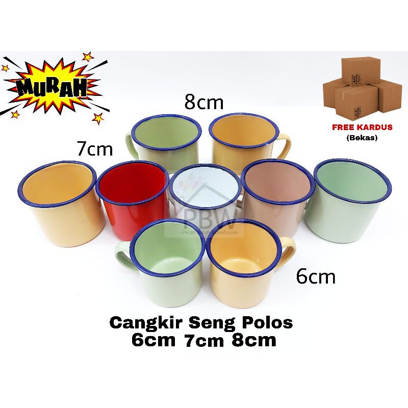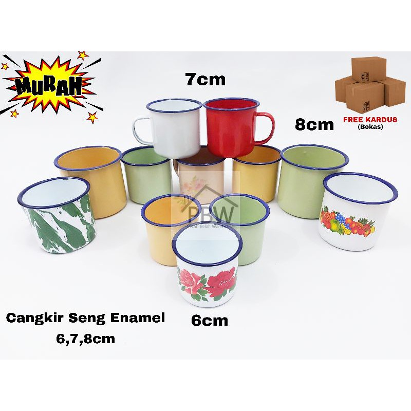 Cangkir Seng Enamel 6cm 7cm 8cm Polos Kembang Blirik / Cangkir Jadul / Souvenir Cangkir