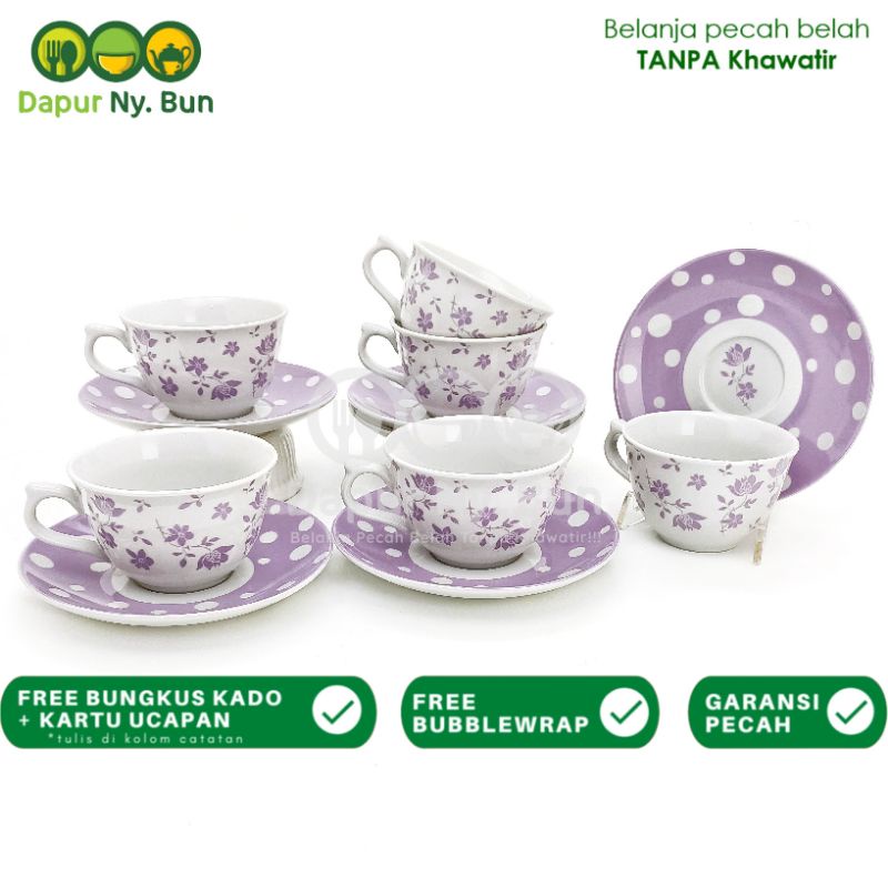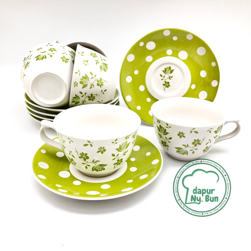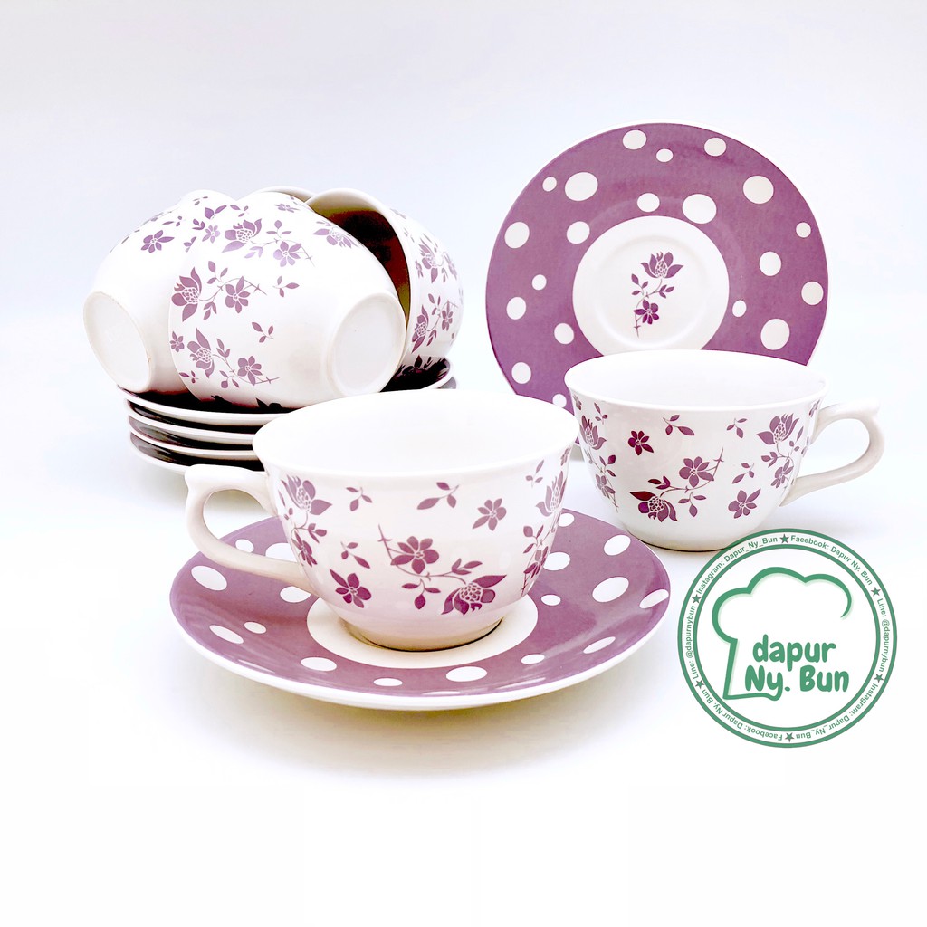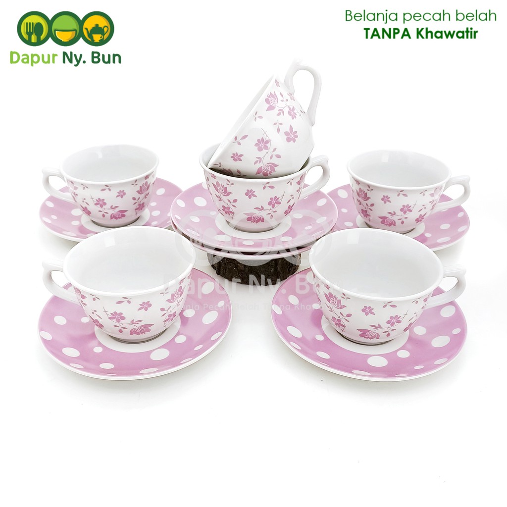 Cangkir Set Tatak Alas Motif Polkadot Fleur Isi 6 Pasang