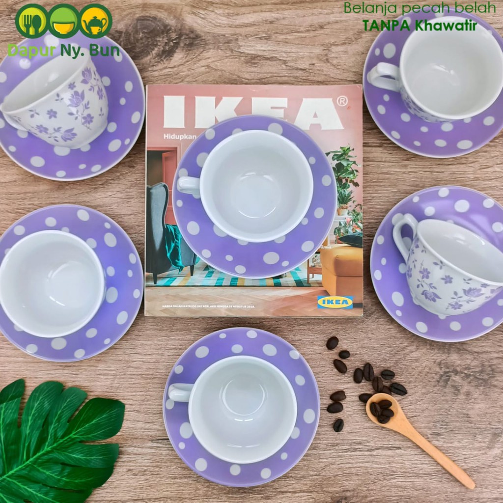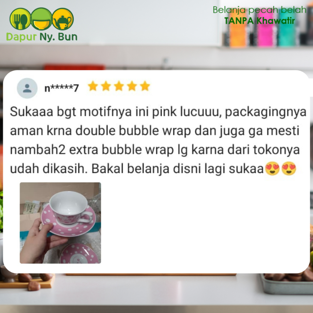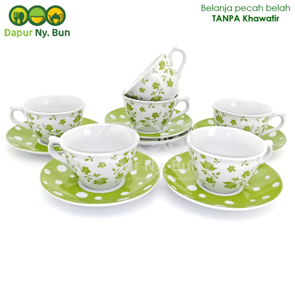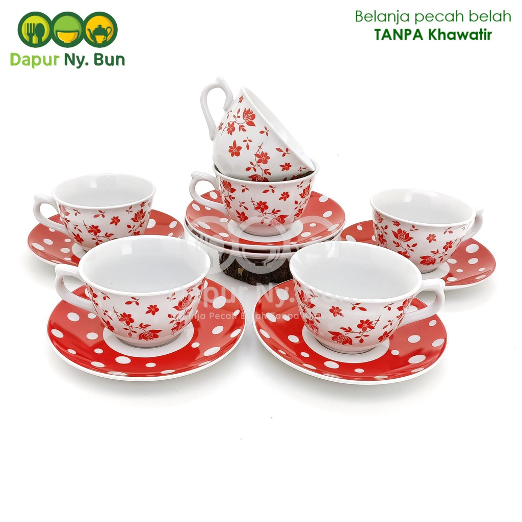 Cangkir Set Tatak Alas Motif Polkadot Fleur Isi 6 Pasang