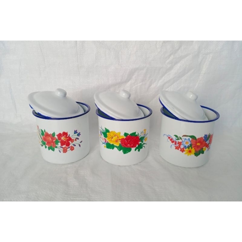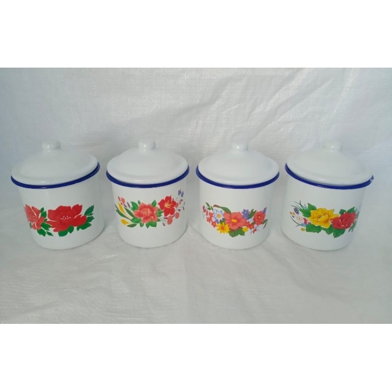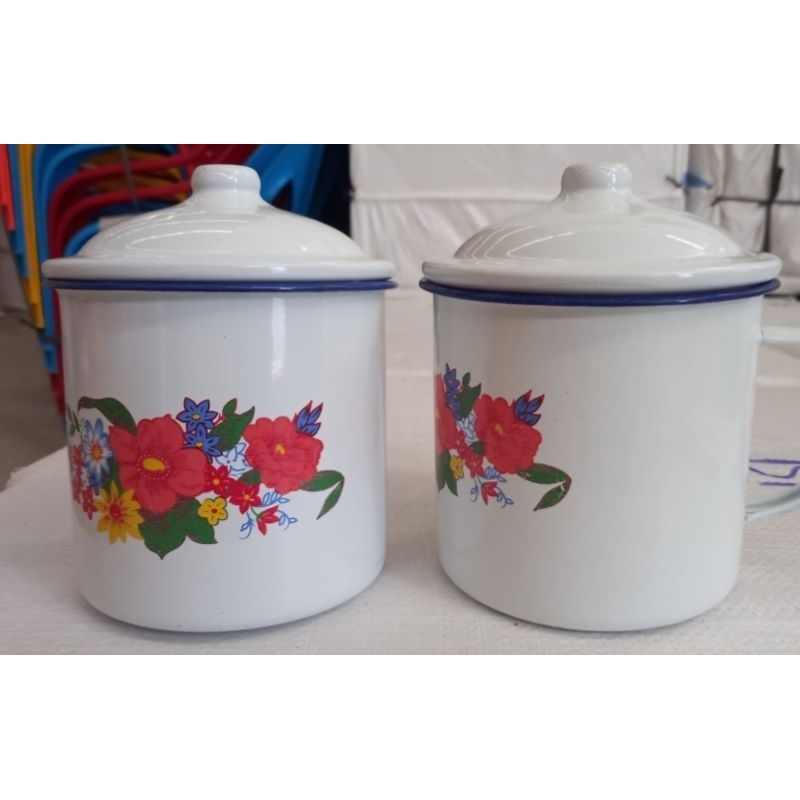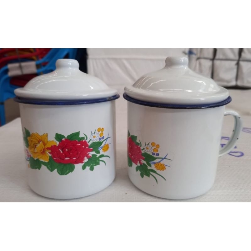 Cangkir Tutup Bunga Blirik 10" 12" / Mug Tutup Enamel Motif Bunga Jadul / Mug Tutup Jadoel