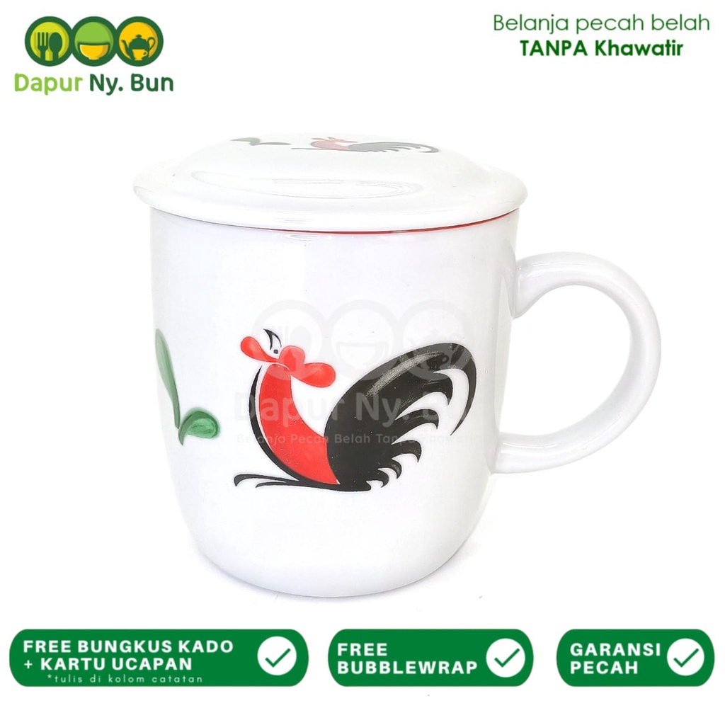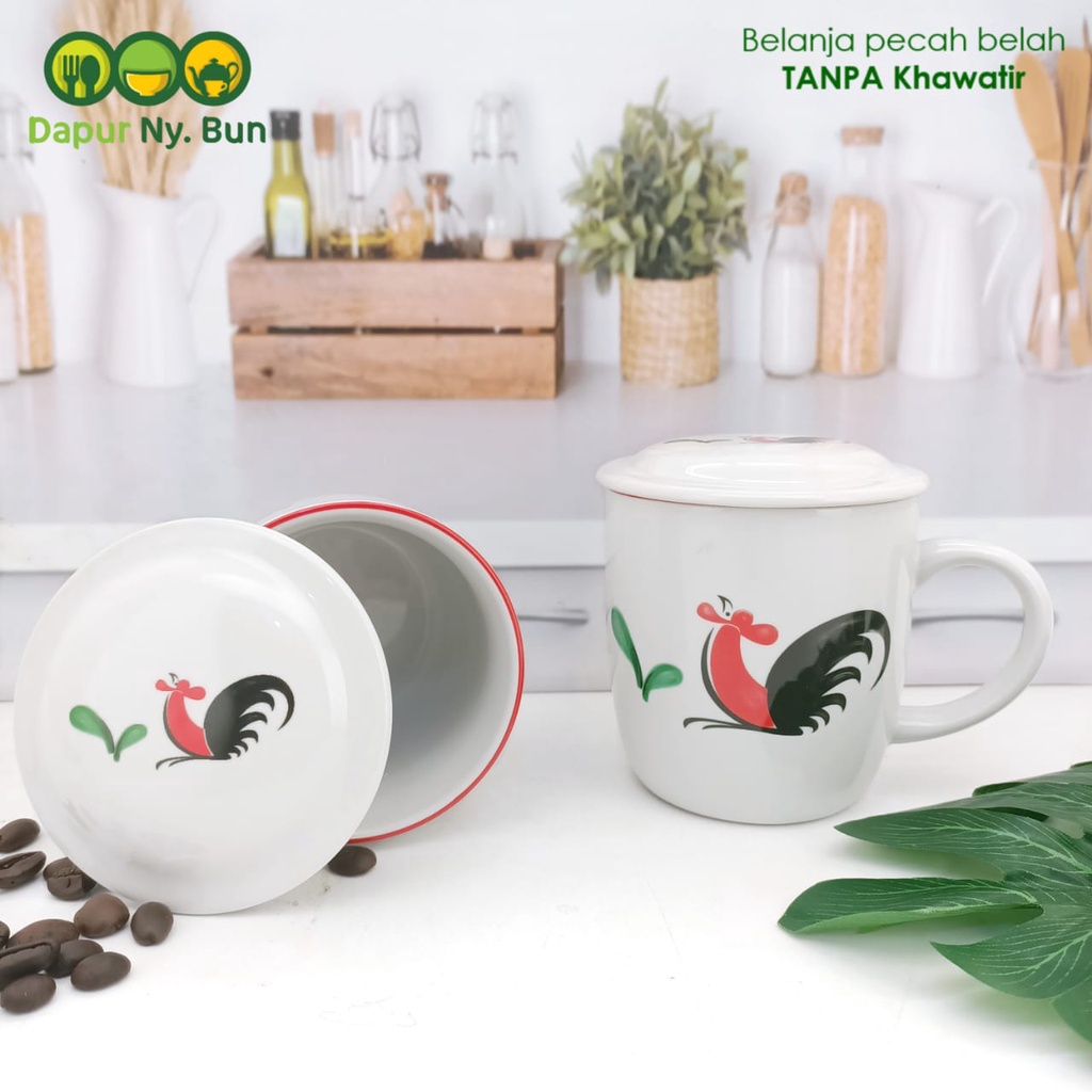 Cangkir & Tutup seri 3 Ayam Jago seri 2 / Mug Teh / Cangkir Kopi