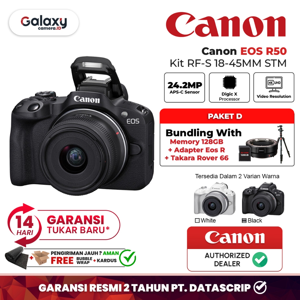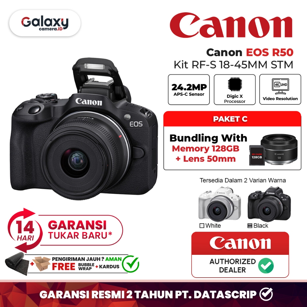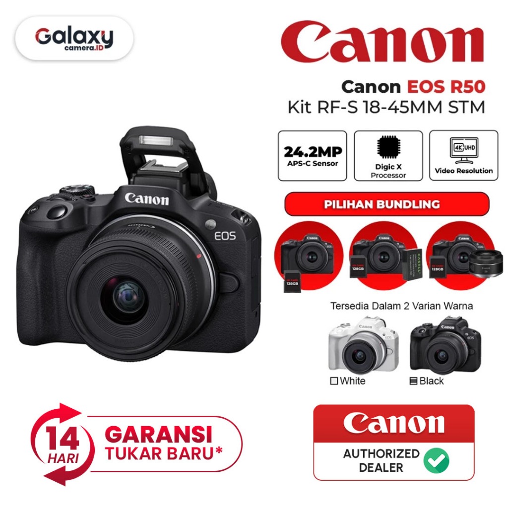 Canon EOS R50 Kit RF-S 18-45MM STM Kamera Mirrorless Garansi Resmi