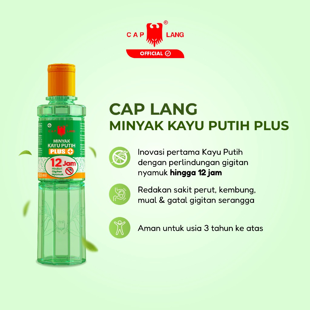 Minyak Kayu Putih Plus Cap Lang 120 ML - Redakan Sakit Perut, Kembung, Mual dan Gatal Gigitan Serangga