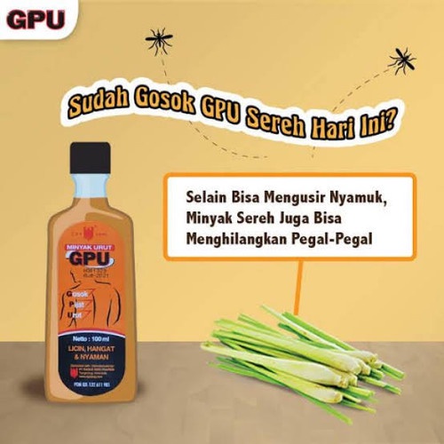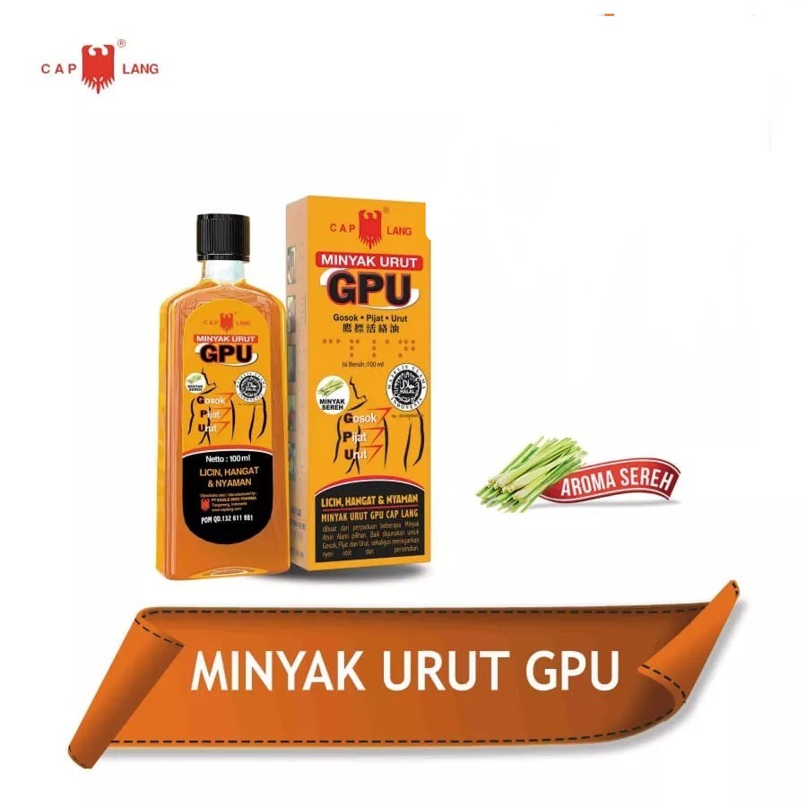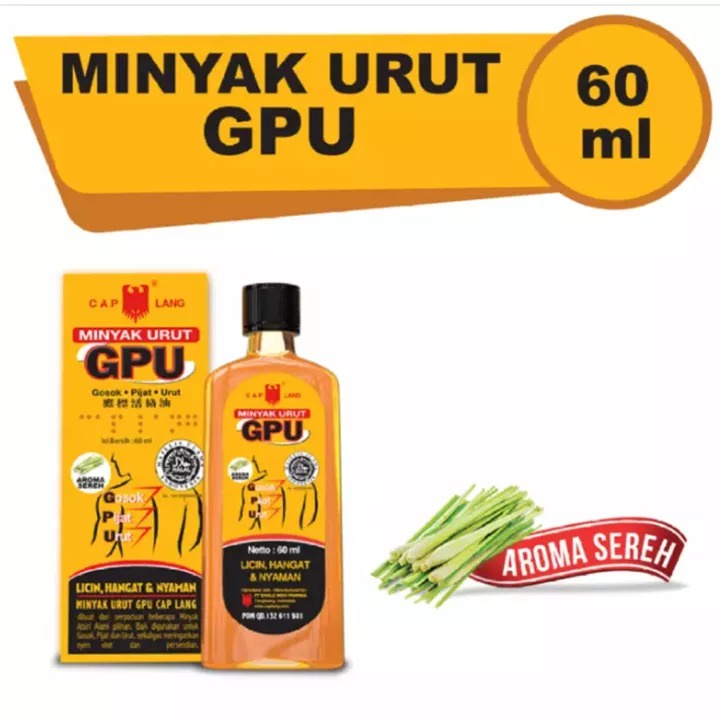 Cap Lang Minyak Urut GPU Sereh 60 ml / Cap Lang Minyak Urut GPU Sereh 30 ml / Meredakan Pegal Linu / Nyeri Sendi / Sakit Punggung / Keseleo / Memar Dan Memperlancar Peredaran Darah.