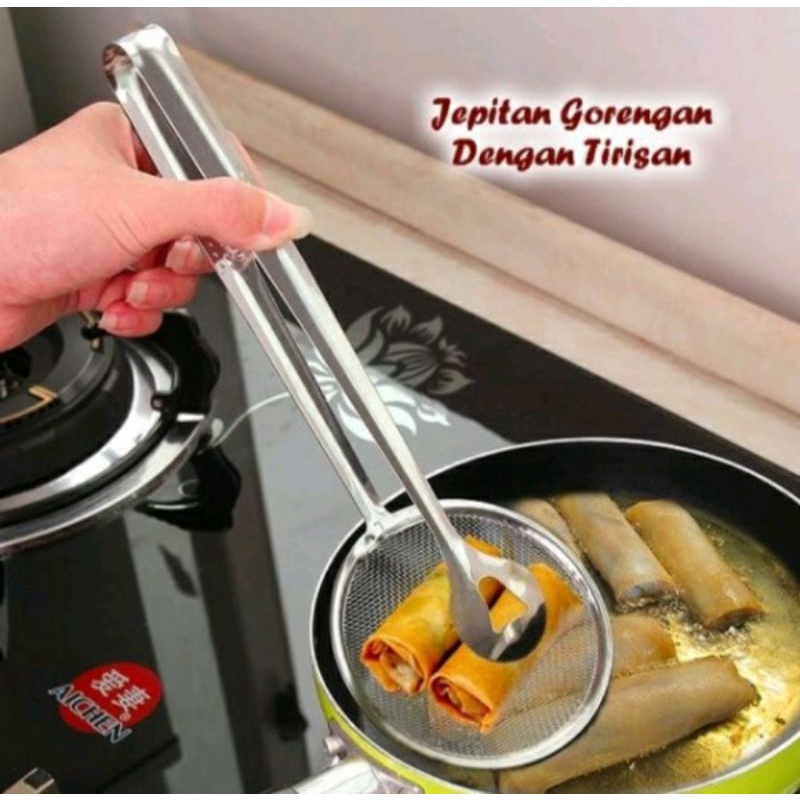 Capitan Gorengan 2 IN 1 /Jepitan Gorengan Dengan Tirisan / Capitan Gorengan / Saringan Gorengan / Serok Jepitan Gorengan / Capitan Saringan Gorengan