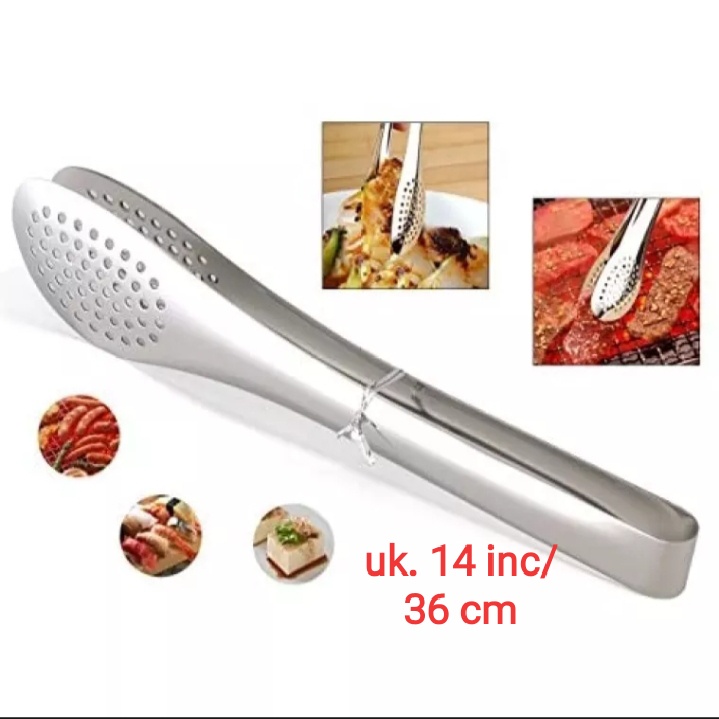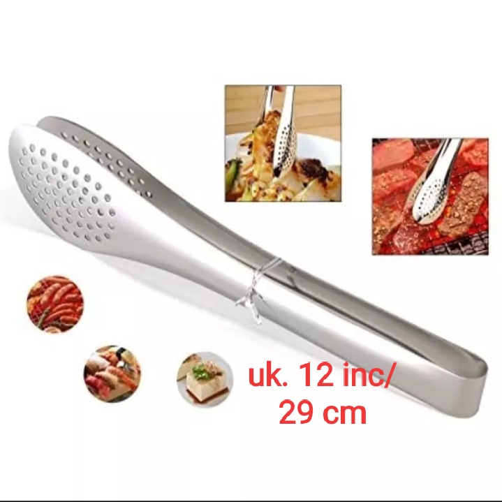 Capitan Makanan Jepitan Makanan Kue Gorengan Bentuk Oval Lobang Kitchen Tong Stainless Steel