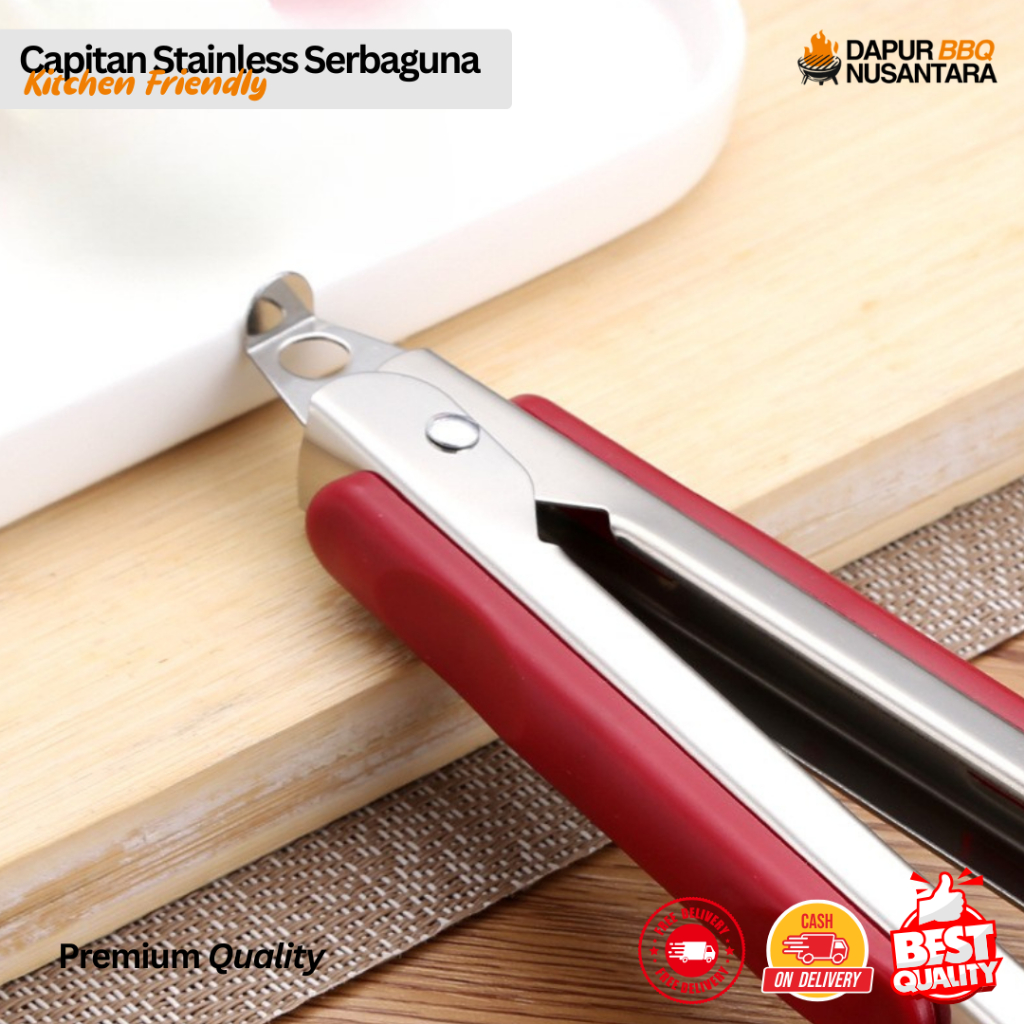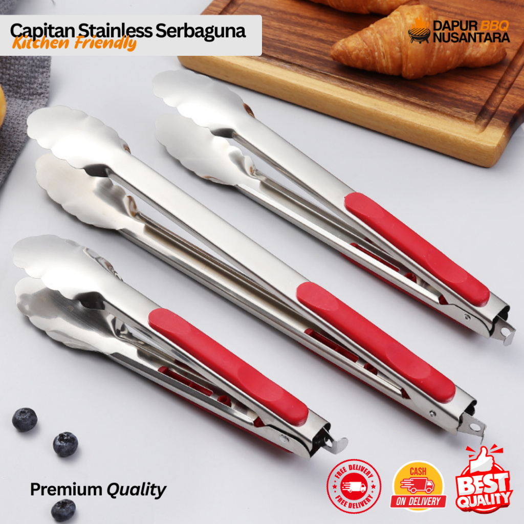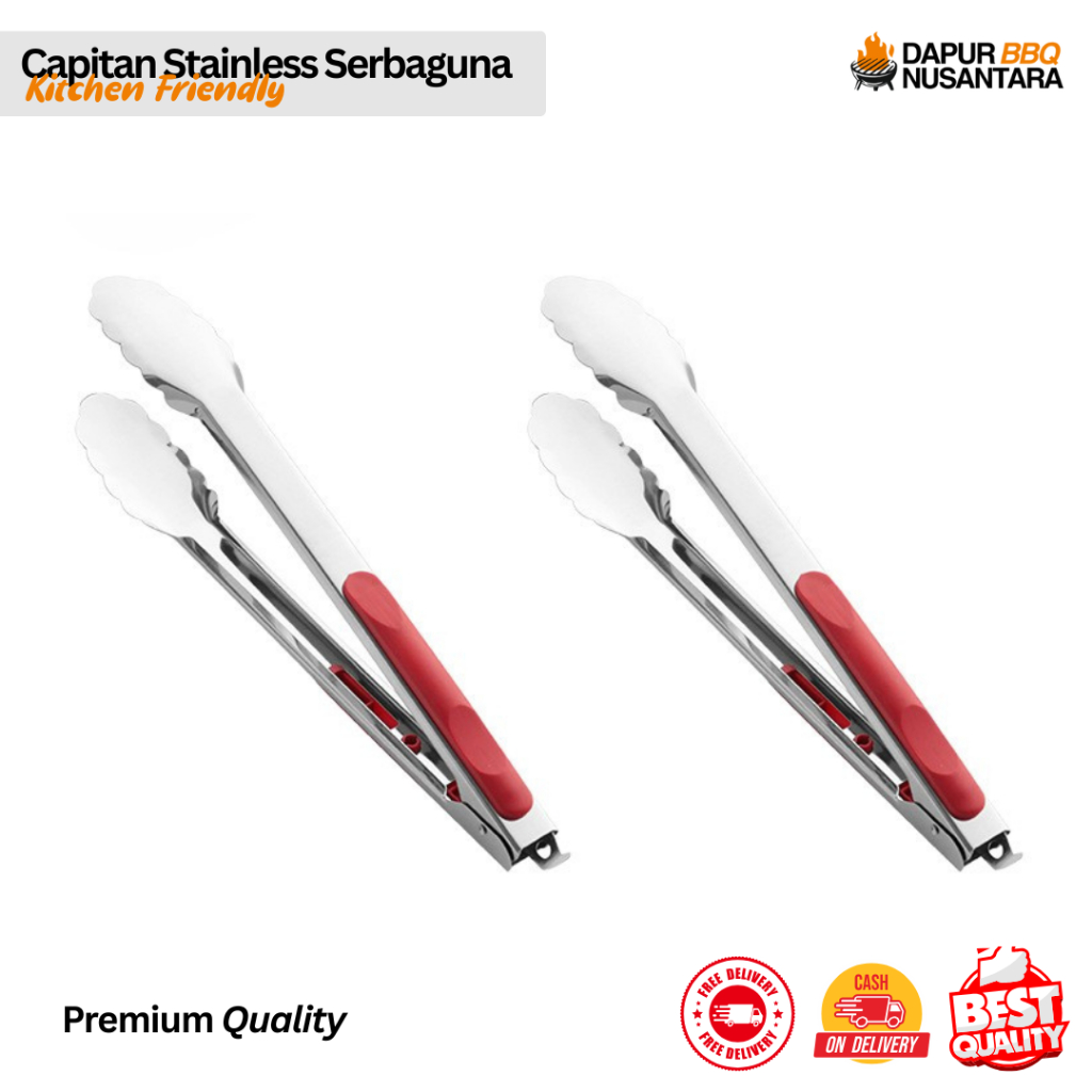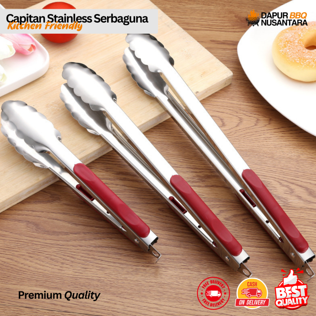 Capitan Stainless Steel Gagang Merah / Capitan Makanan Besar Tebal Tahan Panas Gagang Merah 9296