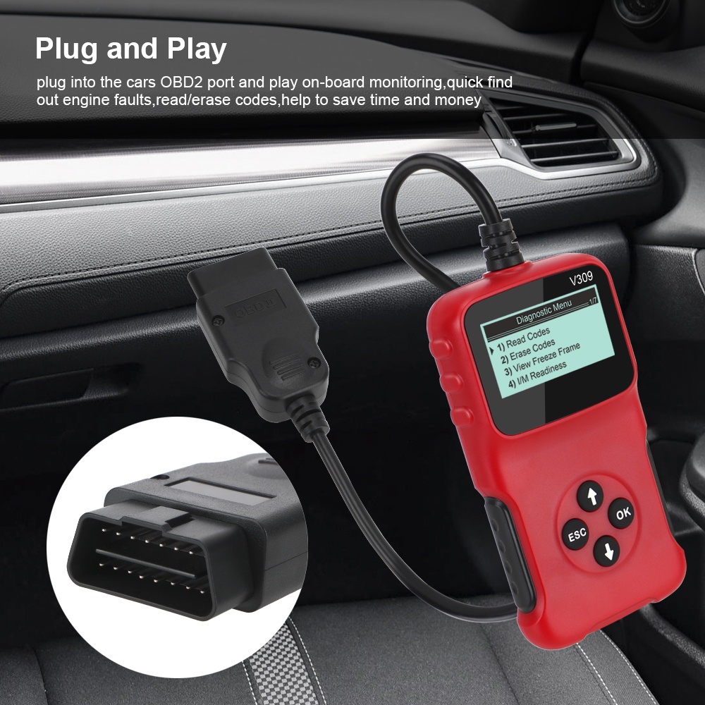 Car Diagnostic Tool Plug and Play Digital Display V309 OBD2 Code Reader OBD 2 Scanner OBDII ELM 327 Auto Accessories