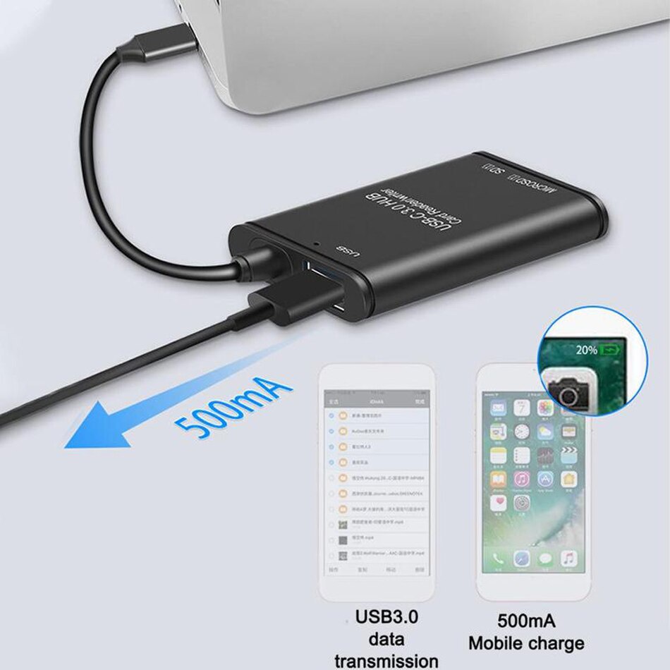 Card Reader USB Type C 3 In 1 USB 3.0 Hub Micro SD / SD Card