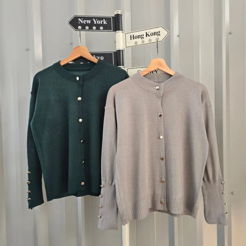 Atasan Wanita Cardigan Rajut Kancing Tangan - Rajut Wanita Nara Polos