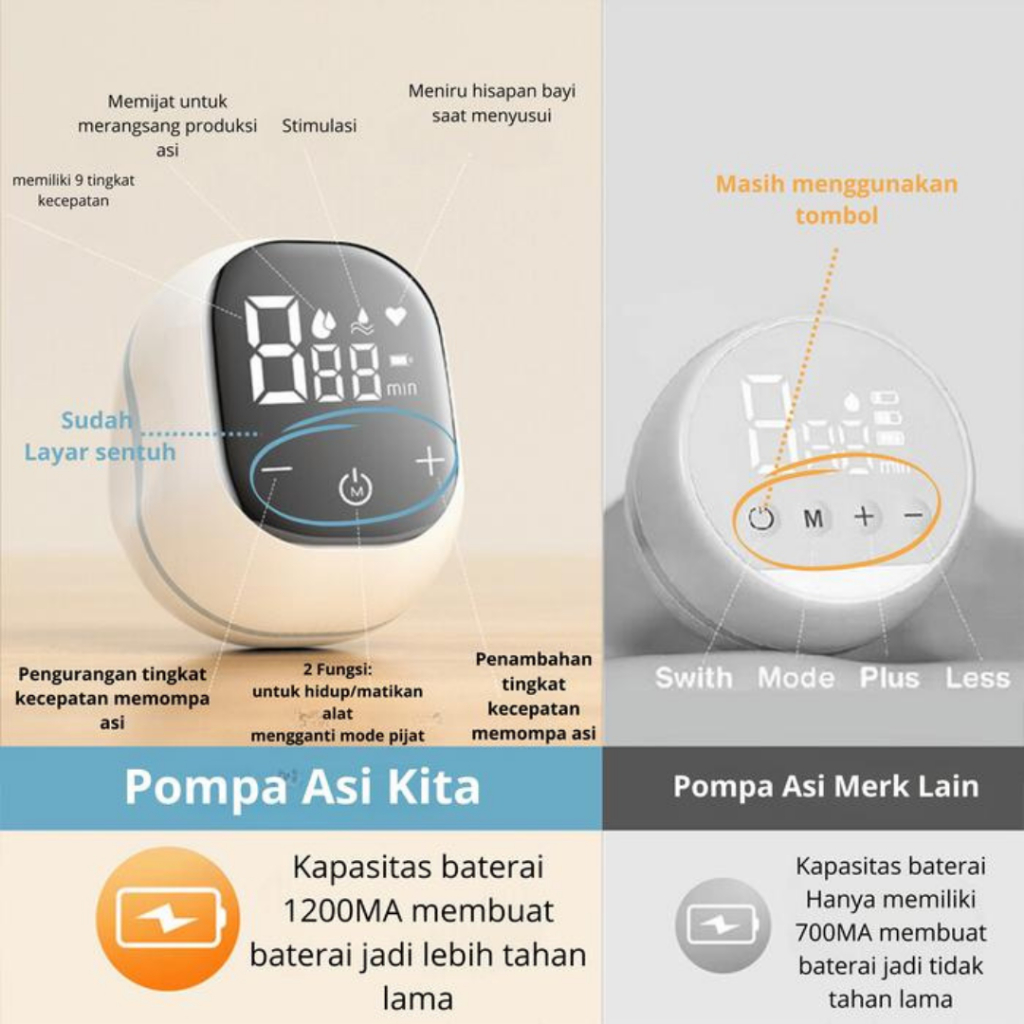 Caredia Pompa ASI Elektrik Tanpa Kabel l Pompa ASI Portabel Tanpa Rasa Sakit