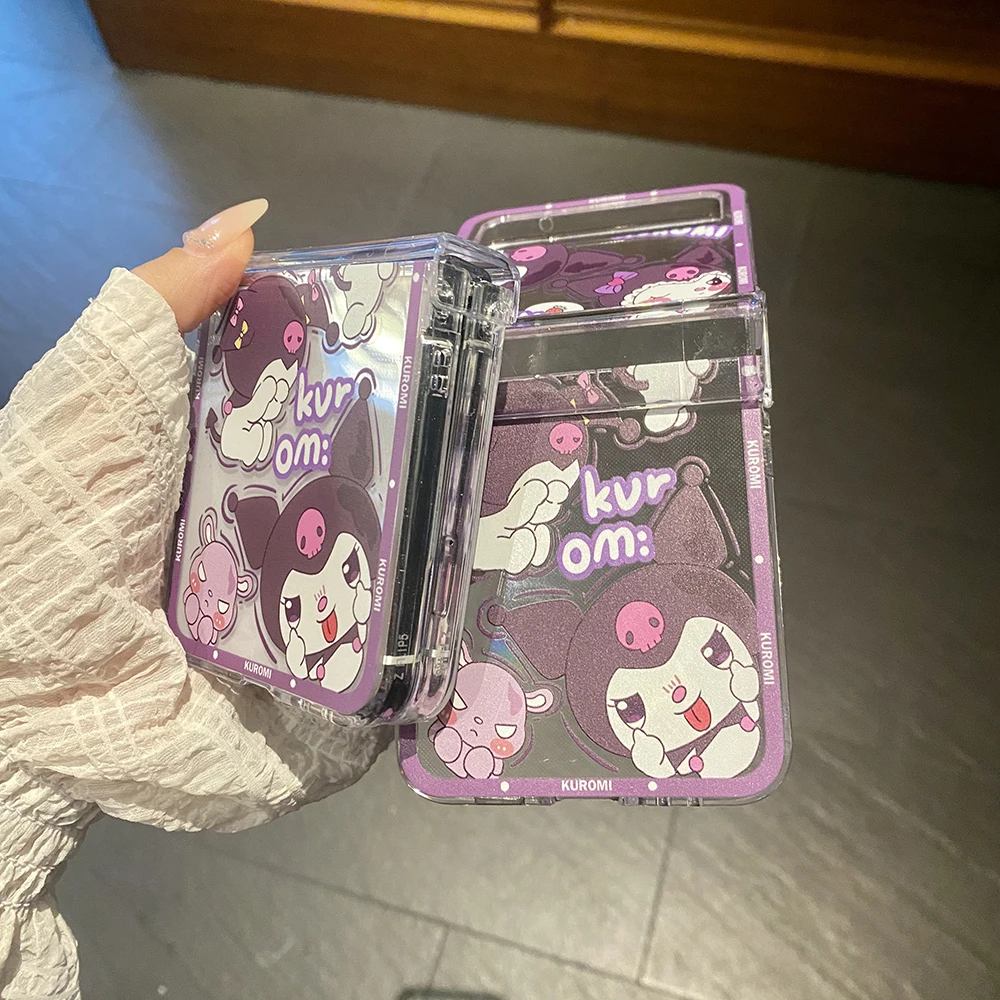 Cartoon Purple Sanrio Kuromi With Lanyard Phone Case for Samsung Galaxy Z Flip 5 4 3 Z Flip 5 Z Flod 5 5G PC Hard Anti-fall Cover