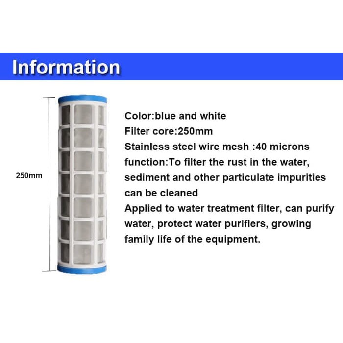 Cartridge Pre Filter Mesh Screen Anti Karat Stainless Steel 10 inch