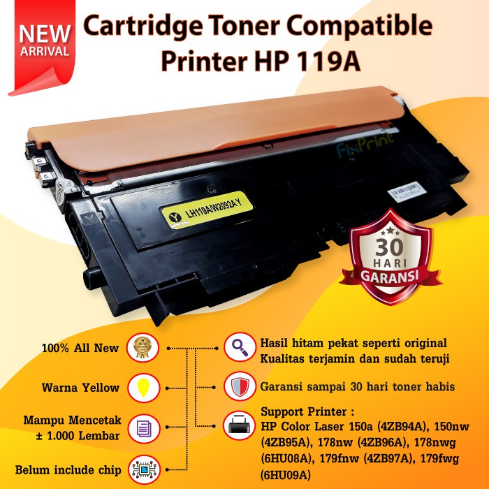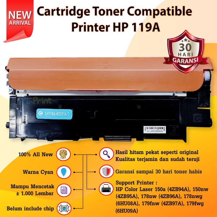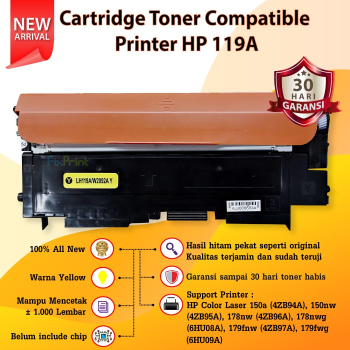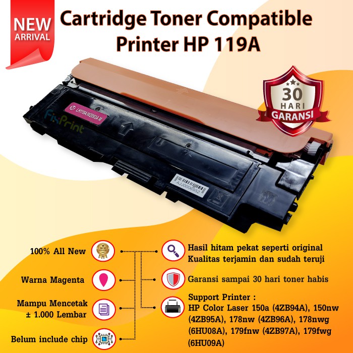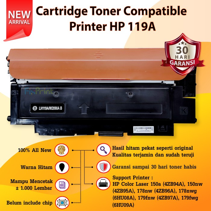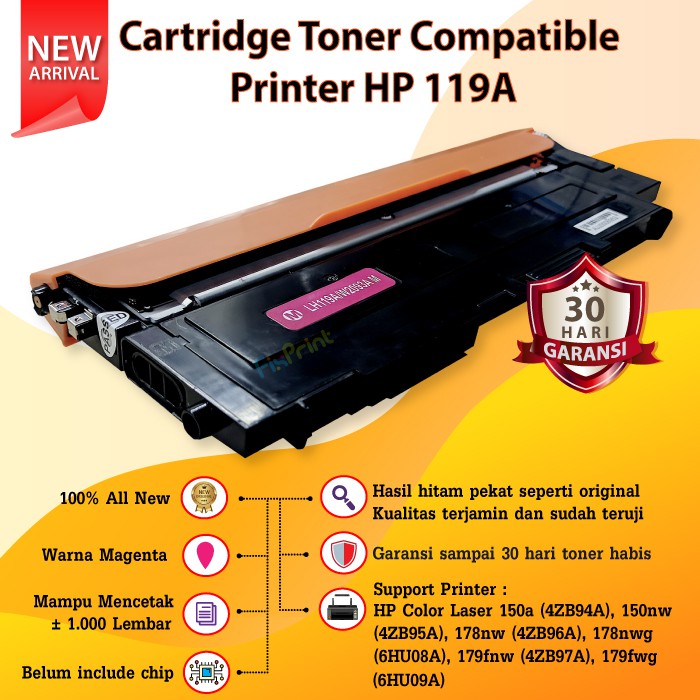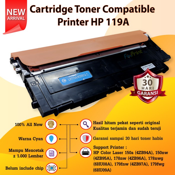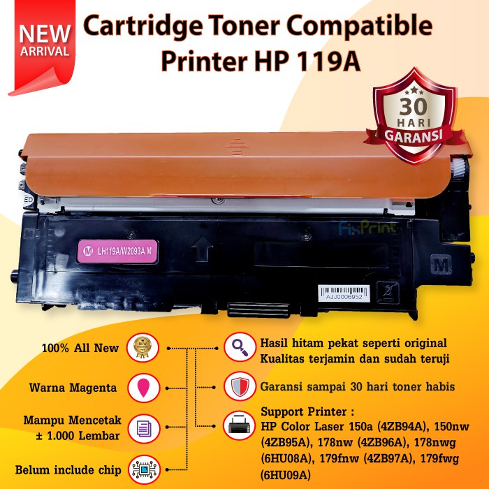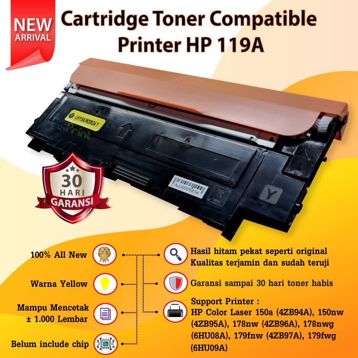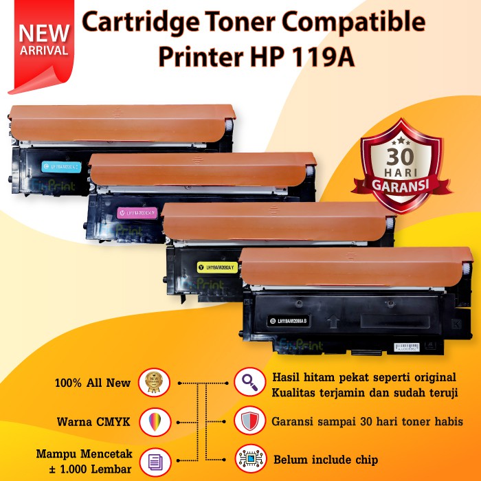 Cartridge Toner Compatible 119A - Printer HP Color Laser 150a 150nw MFP 178nw 179nw 179fnw 179fwg